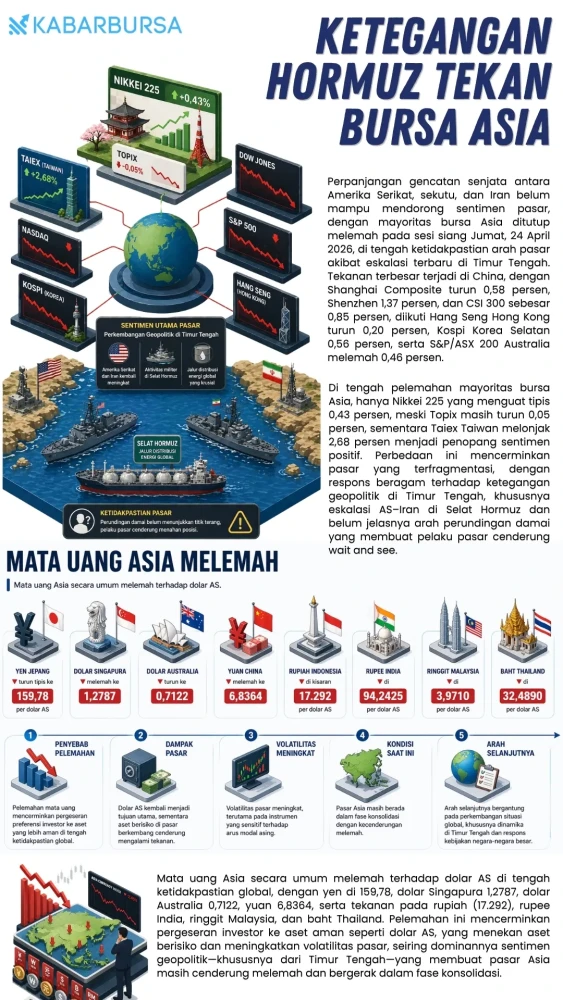Tekanan dari saham LQ45 dan sektor basic industry menahan IHSG, di tengah respons pasar Asia yang beragam atas isu geopolitik.