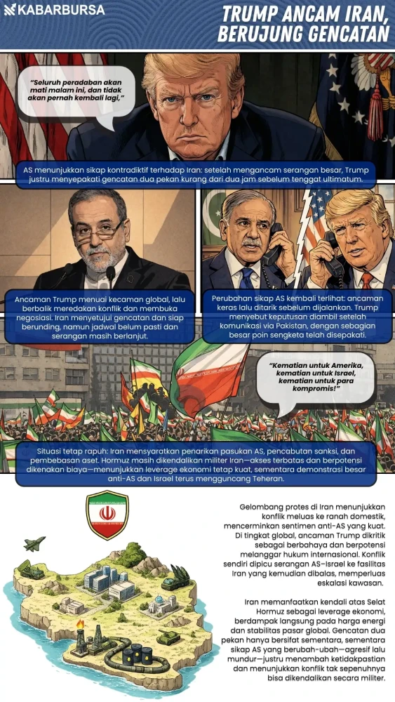 Gencatan senjata dua pekan antara AS dan Iran membuka negosiasi baru, namun 10 tuntutan Teheran dinilai sulit dipenuhi karena menyentuh isu strategis seperti sanksi, nuklir, hingga Selat Hormuz.