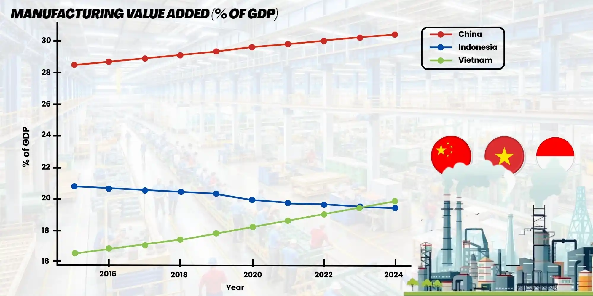 Dalam konteks Asia Tenggara, Indonesia menjadi salah satu mitra ekonomi utama China. Sejak pertengahan 2010‑an, China secara konsisten menempati posisi mitra dagang terbesar Indonesia. Namun struktur perdagangan menunjukkan bahwa Indonesia masih menghadapi defisit pada produk manufaktur bernilai tambah tinggi.
