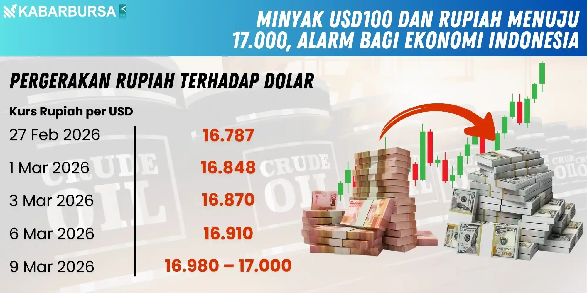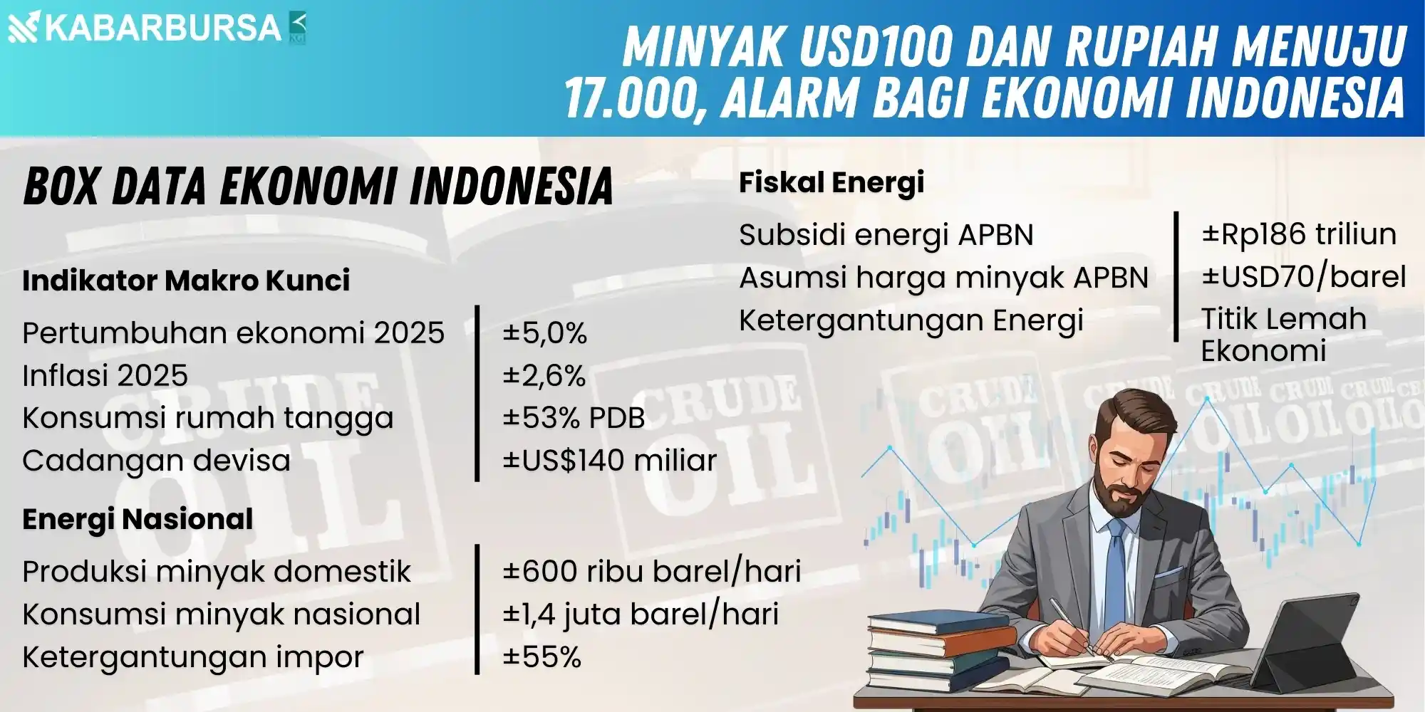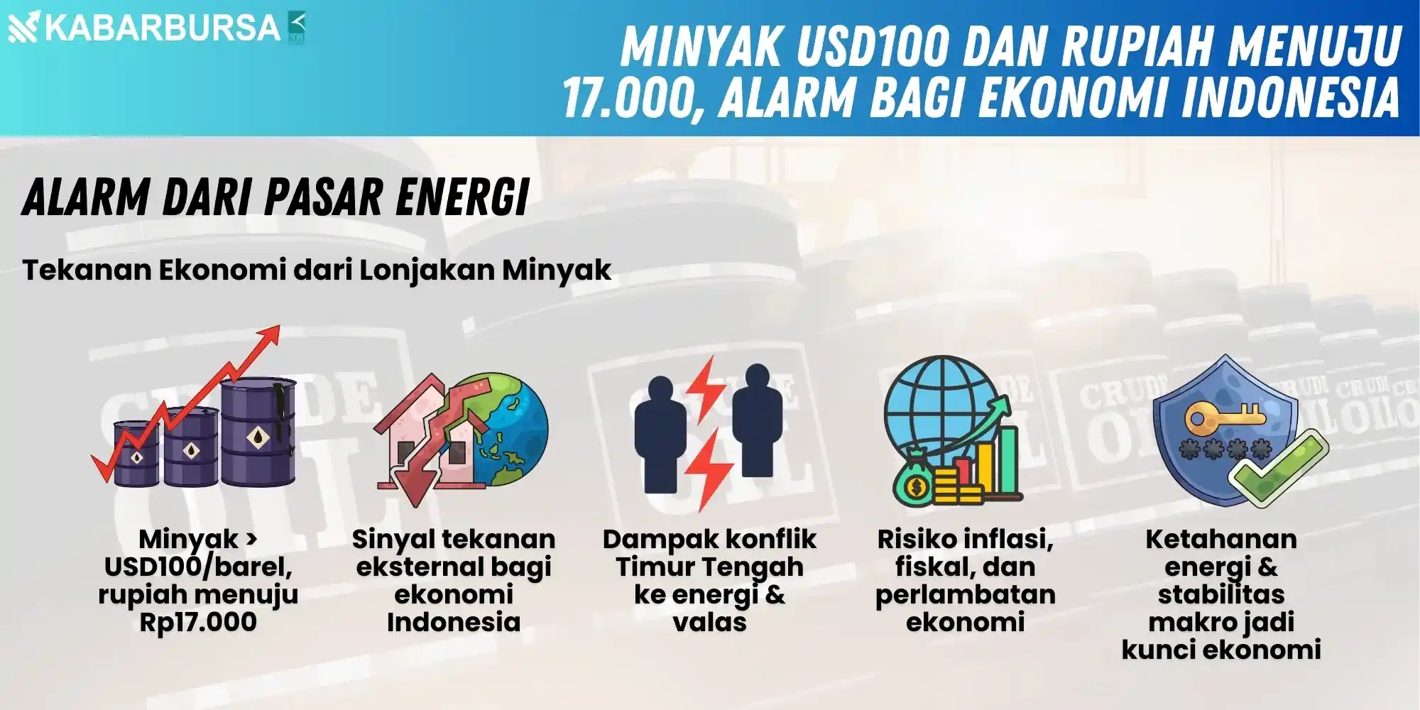 Lonjakan harga minyak di atas USD100 per barel dan pelemahan rupiah menuju Rp17.000 bukan sekadar dinamika pasar jangka pendek. Kombinasi keduanya adalah sinyal bahwa ekonomi Indonesia sedang menghadapi tekanan eksternal yang serius.