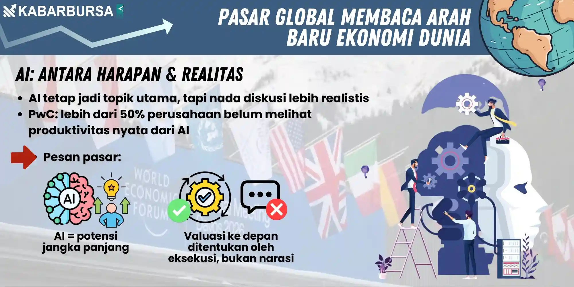 Bagi investor, ini adalah sinyal penting. AI tetap menjanjikan pertumbuhan jangka panjang, tetapi realisasinya akan bertahap. Valuasi sektor teknologi akan semakin bergantung pada eksekusi, bukan sekadar narasi inovasi.