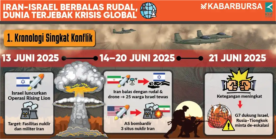 KABARBURSA.COM - Pada Jumat, 13 Juni 2025, dunia menyaksikan babak baru dalam konflik Timur Tengah saat Israel memulai serangan udara masif ke wilayah Iran dalam sebuah operasi bernama Rising Lion. Targetnya jelas: instalasi nuklir Iran dan struktur komando militer, termasuk pejabat senior Korps Garda Revolusi Iran (IRGC). Namun, yang terjadi lebih dari sekadar serangan pencegahan. Konflik ini telah membuka kembali kotak pandora ketegangan geopolitik, mengundang intervensi kekuatan besar, menimbulkan bencana kemanusiaan, serta menciptakan guncangan signifikan terhadap pasar global.