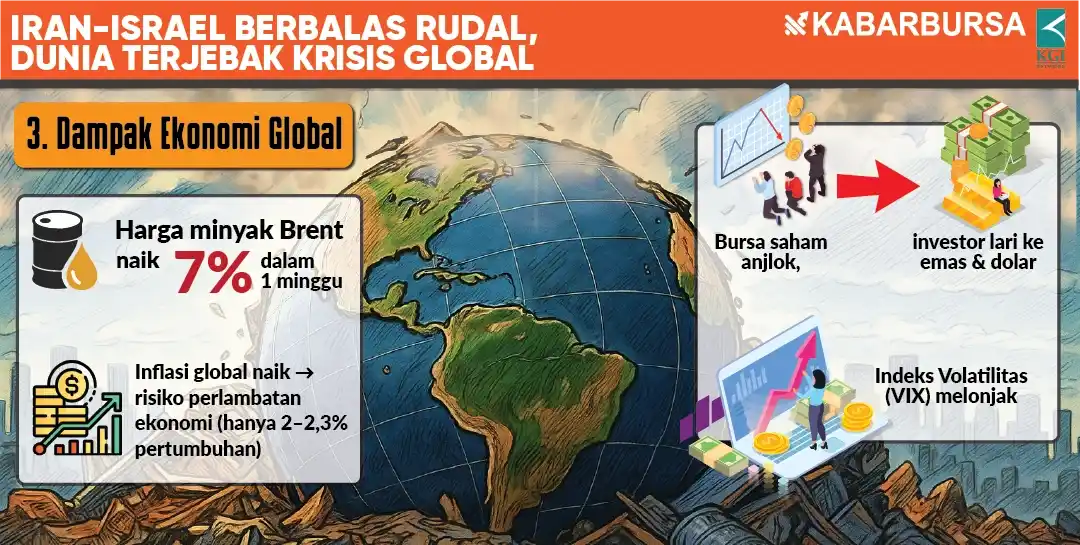 Investor global pun mengalihkan portofolio mereka ke aset aman seperti dolar AS dan emas. Bursa saham di Eropa dan AS mencatat pelemahan signifikan, dan indeks volatilitas pasar (VIX) meningkat. Bloomberg memperingatkan bahwa jika perang berlanjut hingga kuartal ketiga 2025, risiko resesi teknikal dapat meningkat di beberapa negara.