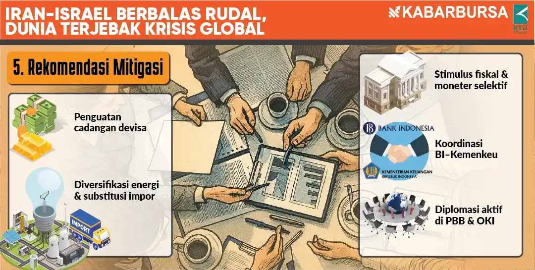- Diplomasi aktif di PBB dan OKI, untuk mendorong de-eskalasi dan melindungi kepentingan Indonesia di jalur dagang global.