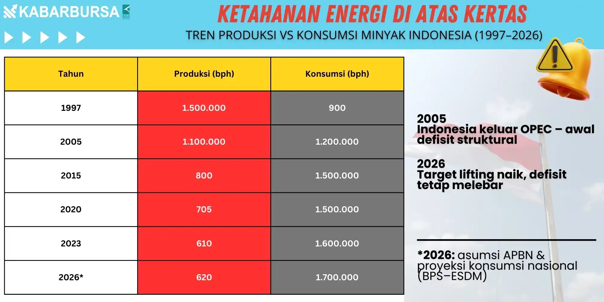 KABARBURSA.COM - Target lifting minyak dan gas (migas) harian diklaim terlampaui. Pernyataan itu diulang. Dipertegas. Dan dirayakan. Namun di balik euforia statistik tersebut, Indonesia saat ini sedang defisit minyak.