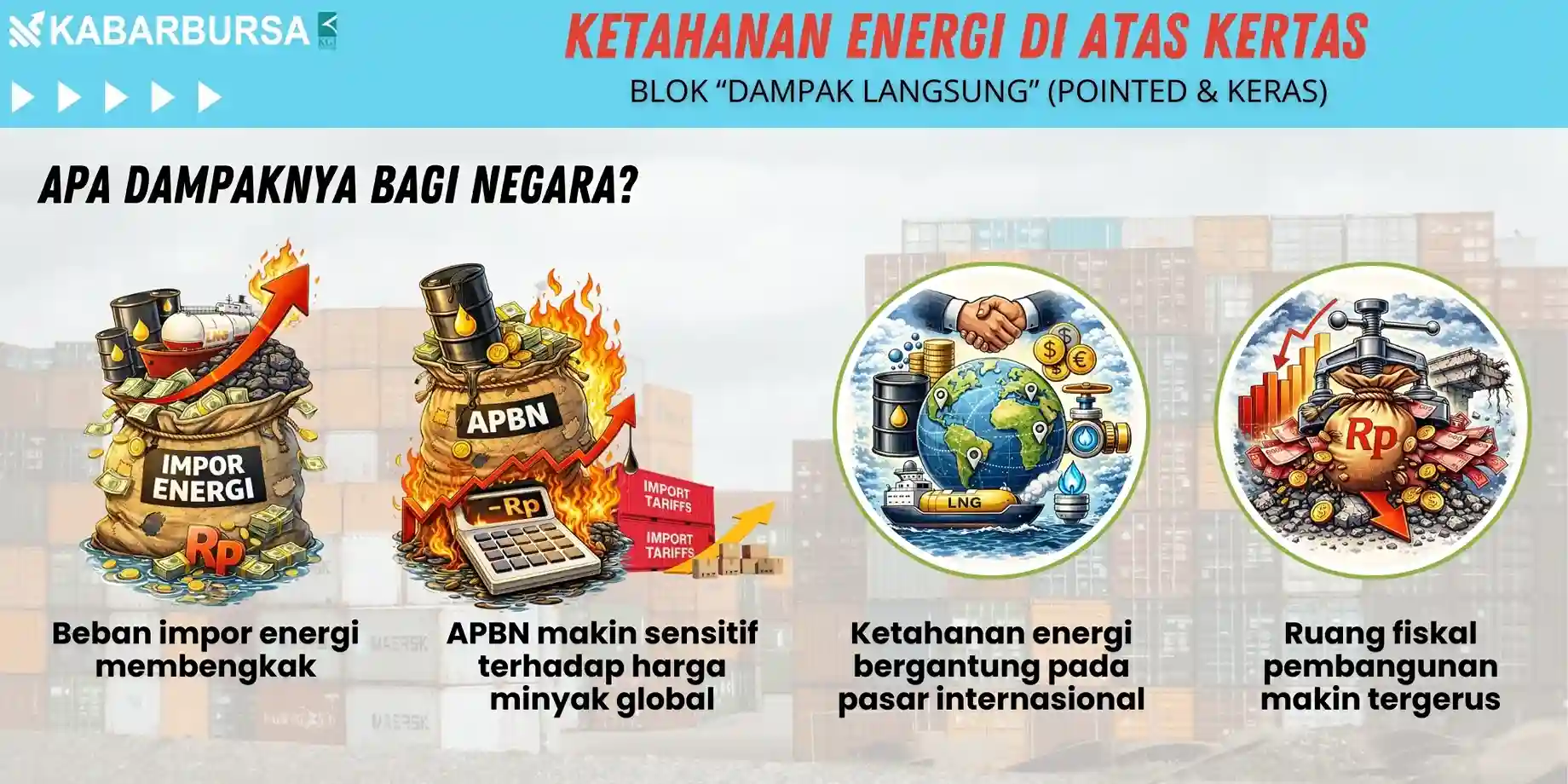Ketahanan energi seharusnya berarti kemampuan negara bertahan tanpa bergantung pada pasar global yang tidak bisa dikendalikan. Namun kebijakan hari ini, justru menempatkan Indonesia sebagai konsumen pasif dalam sistem energi dunia. Konsekuensi logisnya, negara mudah terguncang. Indonesia mudah tertekan.