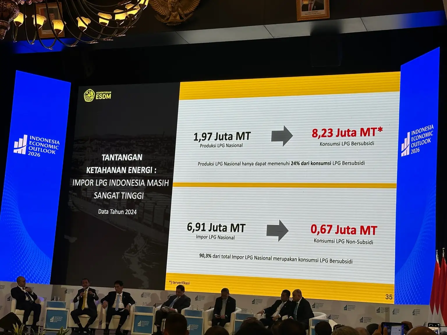 Data yang ditampilkan Kementerian ESDM menunjukkan impor LPG nasional mencapai 6,91 juta metrik ton. Dari jumlah itu, sekitar 90 persen merupakan LPG subsidi. Ketimpangan ini bukan sekadar soal neraca perdagangan, melainkan juga tekanan terhadap subsidi energi.