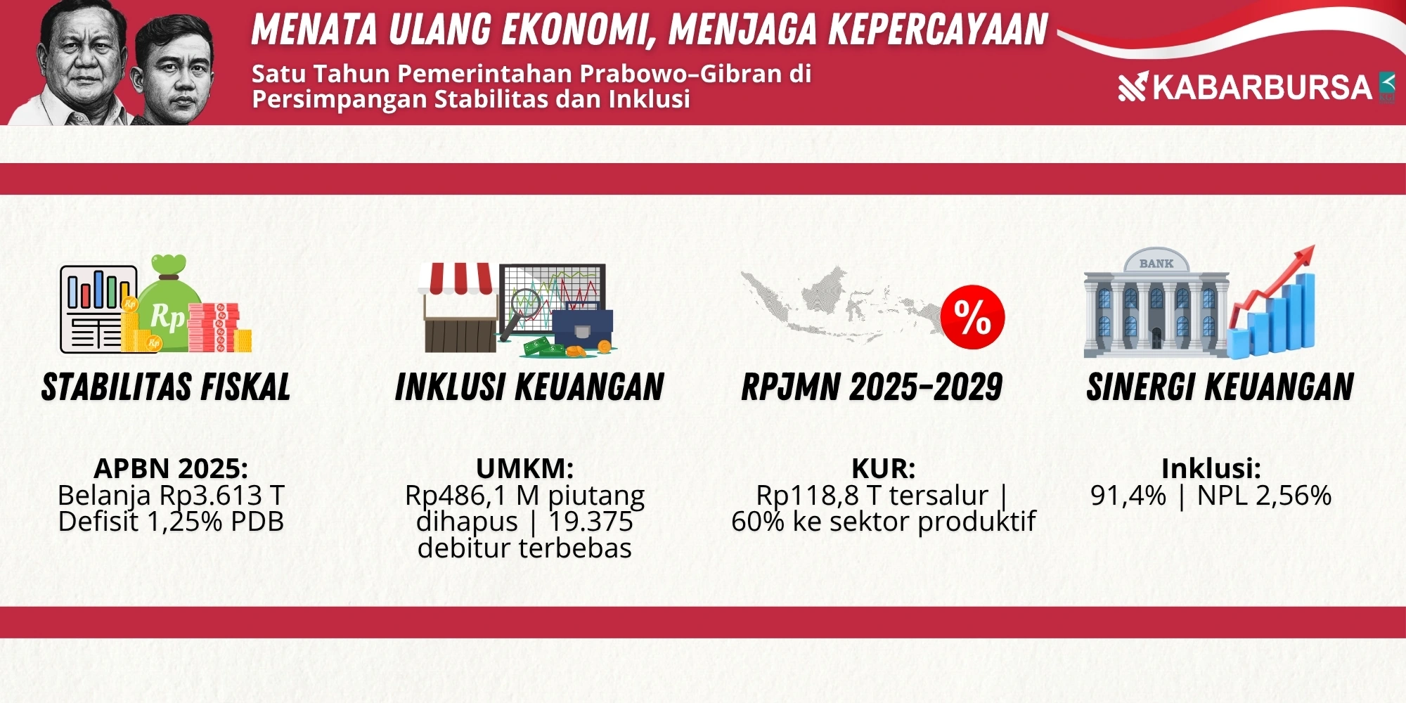 Satu tahun pertama pemerintahan Prabowo Subianto dan Gibran Rakabuming Raka menjadi ajang pembuktian arah baru ekonomi Indonesia. Di tengah tekanan geopolitik, fluktuasi harga komoditas, dan arus modal global yang belum pulih sepenuhnya, pemerintah berupaya menata ulang fondasi kebijakan fiskal dan keuangan nasional. Tujuannya jelas, meneguhkan stabilitas tanpa mematikan ruang inklusi.