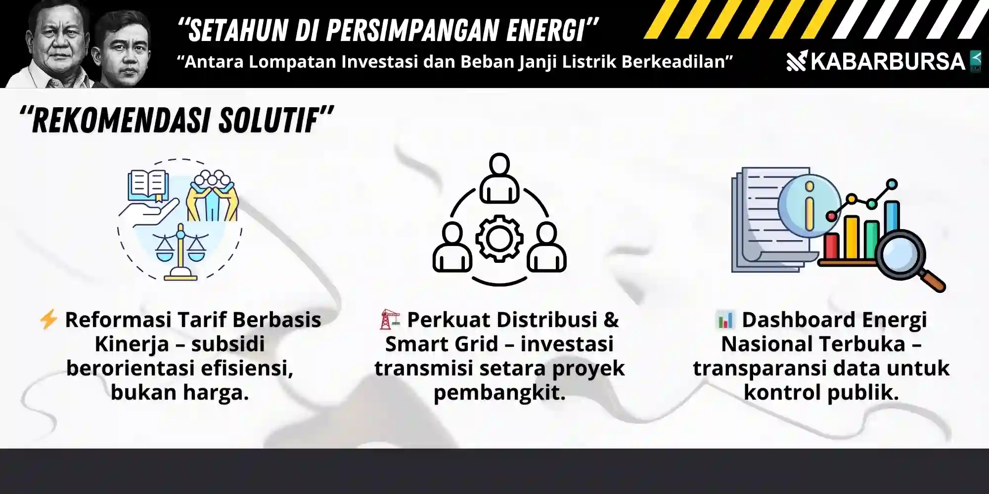 Reformasi juga harus menyentuh sisi distribusi energi. Sistem transmisi dan distribusi perlu mendapat investasi yang sama besar dengan proyek pembangkit. Pemerintah mesti menetapkan skema insentif bagi daerah yang berhasil menekan kehilangan energi (technical loss) dan mempercepat digitalisasi grid. Insiden pemadaman hanya bisa dihapus jika infrastruktur pendukung diperkuat dari hulu hingga hilir.