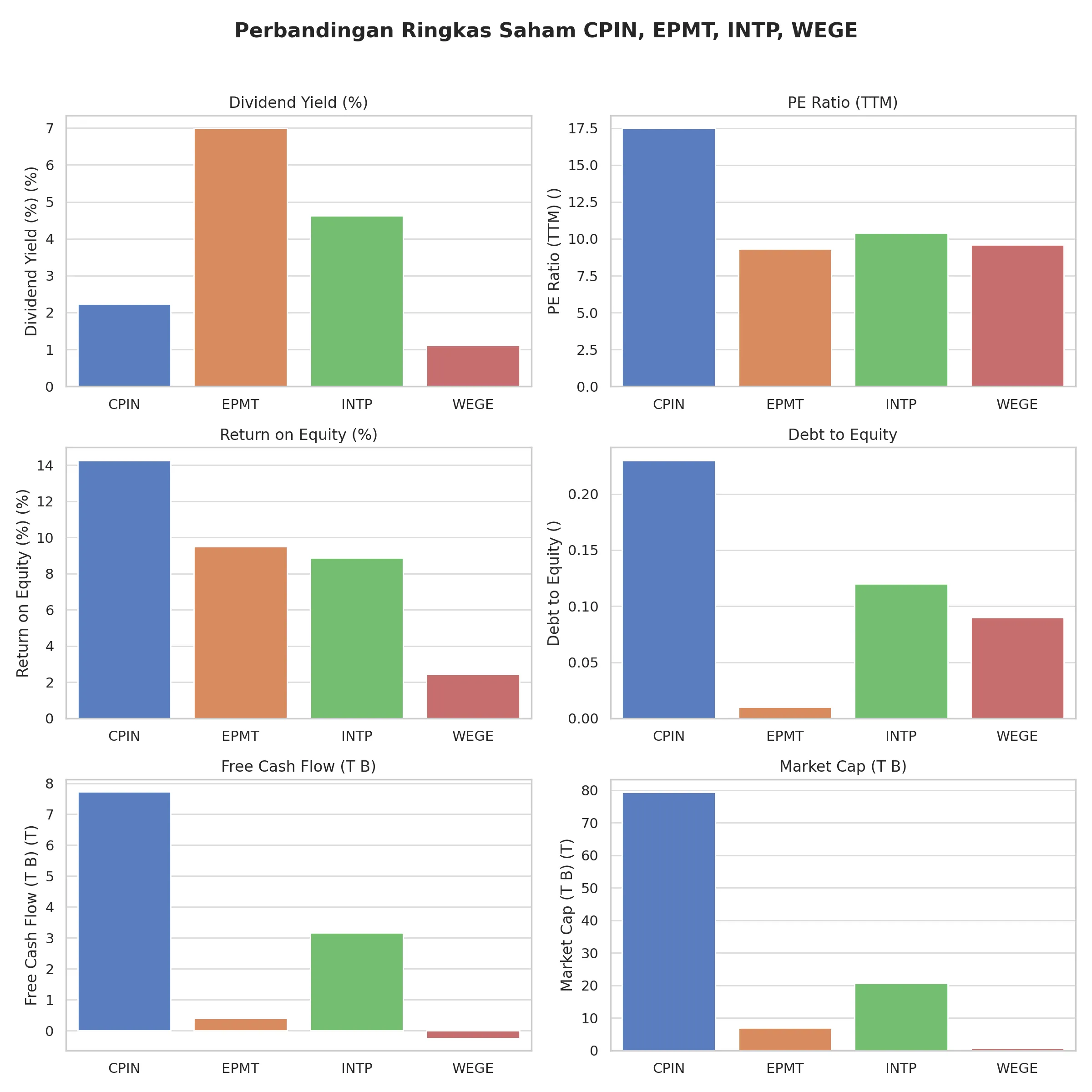 Selain WEGE dan EPMT, ada juga Indocement Tunggal Prakarsa (INTP) dan Charoen Pokphand Indonesia (CPIN). Bukan semata karena prospek dividen, tapi juga karena fundamental bisnis yang masih terjaga.