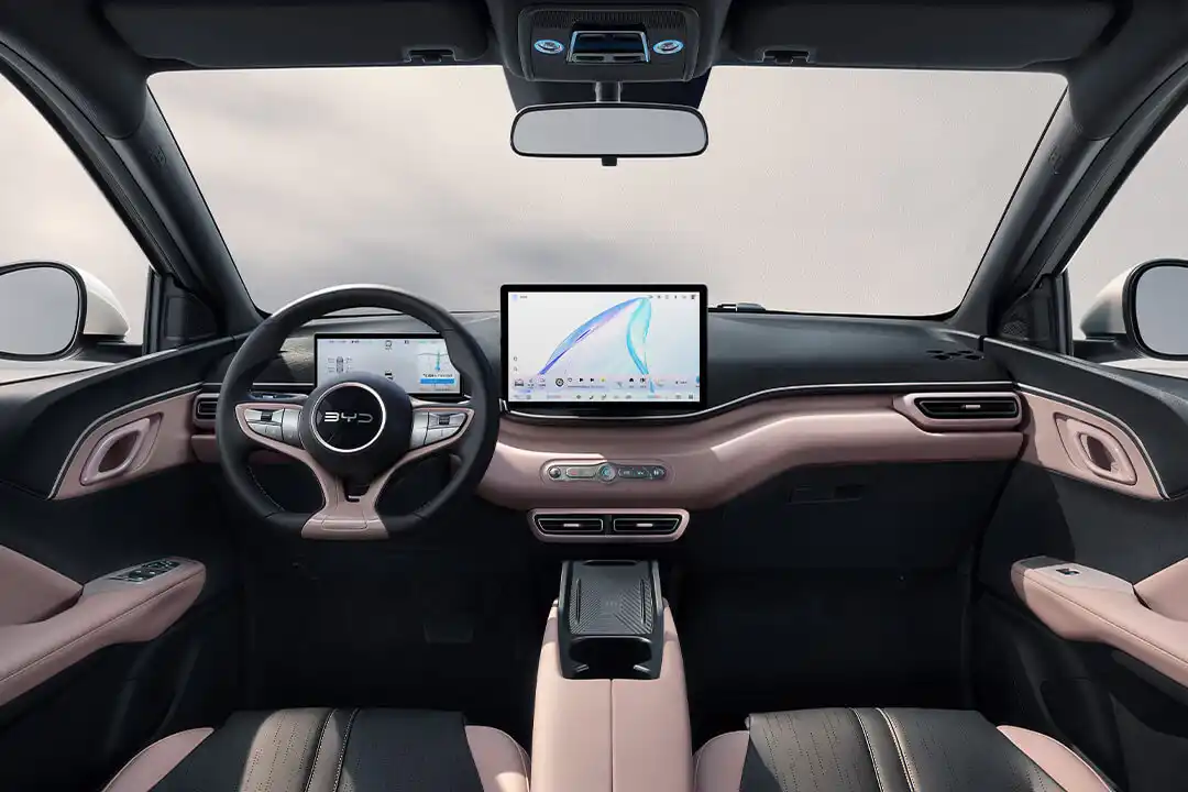 Untuk sistem hiburan, Free Edition hadir dengan layar sentuh 12,8 inci model floating yang menjalankan sistem infotainment DiLink 100 BYD. Fitur interaksi suara dan integrasi cloud sudah tersedia, menjadikan pengalaman berkendara makin futuristik.