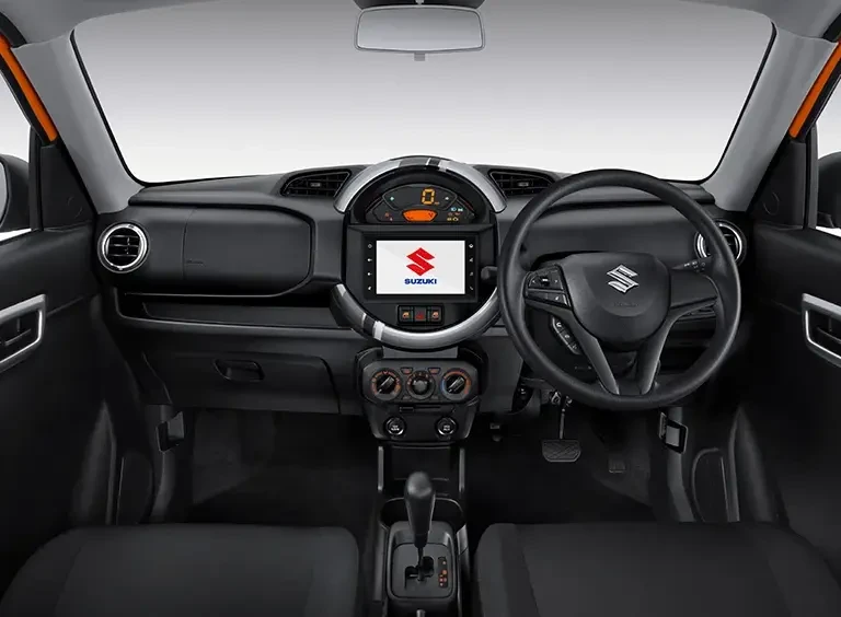 Sedangkan kabin Suzuki S-Presso mengusung warna serba hitam yang dihiasi aksen silver untuk menonjolkan kesan modern. Kabinnya dapat ditumpangi maksimal empat orang penumpang.
